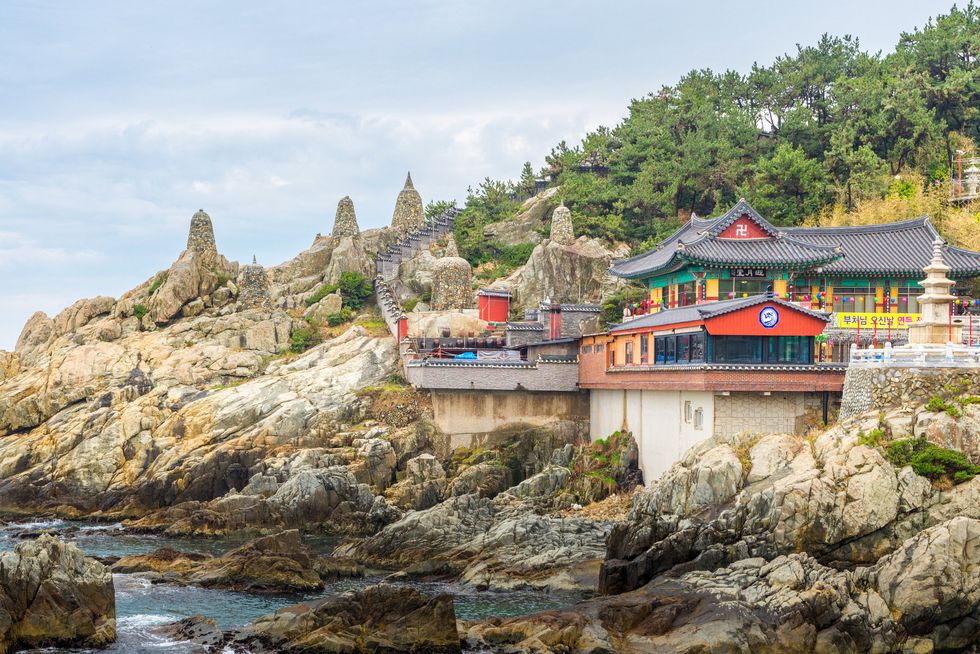 Puszan, Dél-Korea második legnagyobb városa, a Japán-tenger partján fekszik. Mivel kereskedelmi és gazdasági szempontból is fontos célállomás, ma már nagyon sűrűn lakják. A képen látható Haedong Yonggung buddhista templom a 14. században épült, és egy bizonyos Naong Hyegeunin azért építtette, mert álmában a tenger istene azt tanácsolta neki, építsen a sziklára egy templomot, így véget vethet az éhínségnek és visszatér a boldogság az emberekre, ha ezen a helyen imádkoznak. Ezek az épületek ma is a város legrégebbi és legszebb látványosságai, rengeteg turista zarándokol el hozzájuk.