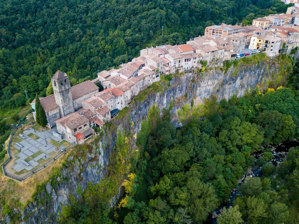 Katalónia egyik leghíresebb látványossága ez a két folyó találkozásánál lévő sziklaperemre épült falu, melyet a középkorban alapítottak. A legrégebbi épület a 11. században épült Sant Salvador kolostor, ahonnan csodálatos látvány fogad: a Pireneusok vonulatai lélegzetelállítóak. A környéken rendszeresen lehet hőlégballonnal repülni, amit érdemes bevállalni, hiszen madártávlatból jól látható a sziklára épült falu és az egész vulkanikus környék.